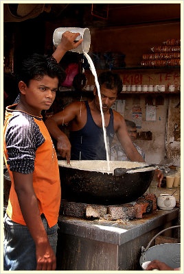 Zbudil me je jutranji vrvež. Bilo je zgodaj, na trenutek prezgodaj za moje telo (zaradi zamika v času), toda zagotovo ne prezgodaj za moj um. Želel si je videti/čutiti kaj se dogaja. Odpravila sem v mesto. Indijci se poslužujejo hrane z uličnih restavracij, kjer jo svežo pripravijo in ponudijo še zelo vročo. Te restavracije so skromne in običajno ne ravno urejene, so pa večinoma čiste, predvsem pa veš, kaj poješ, saj vso hrano pripravijo pred tvojimi očmi. Cene so skromne, kot so skromni ljudje. Obrok z rižem, omakami in indijskim nekvašenim kruhom (roti - čapati) dobiš že za nekaj centov. Na krožnik ti dodajajo riža in rotijev, dokler nisi sit. Zraven večinoma pijejo vodo. To je točka, ko mora biti tujec še posebno previden in piti samo ustekleničeno vodo, le-te pa ni možno kupiti na vsakem vogalu. Zelo poživljajoč učinek ima indijski čaj z mlekom (Chai), kateri je sicer zelo sladkan, toda tveganje je minimalno. Voda je prevreta. Seveda so na vsakem koraku na voljo tudi urejene restavracije, ki so sicer nekoliko dražje in ne vedno najbolj okusne.